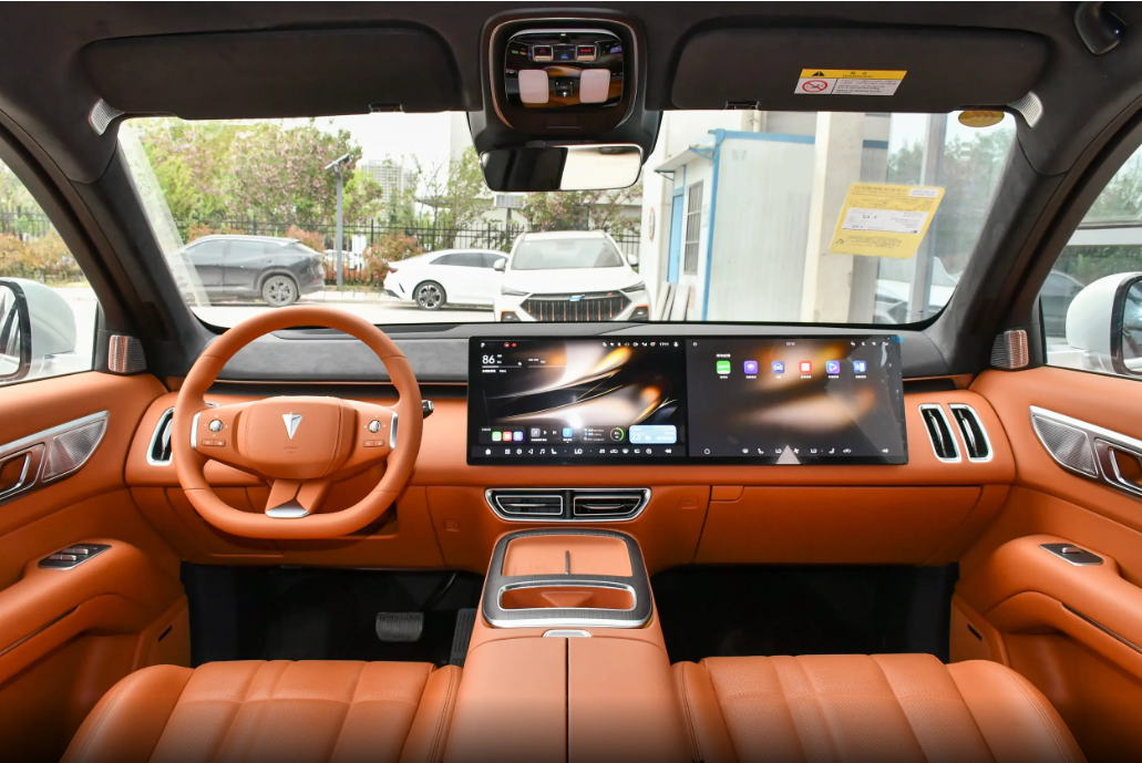 来到车内,可以看出深蓝S09车内配置贴心,双15.6英寸连体大屏兼顾主副驾,标配43英寸AR-HUD,开车看信息不用低头,电子怀挡+360°全景影像让驾驶更轻松安全。副驾能独立操作空调、多媒体等功能,能搭把手还不无聊。全系标配鸿蒙座舱HarmonySpace5系统,搭配车规级芯片操作超流畅,3D车模+多主题上手简单,还能切换影院、K歌房等场景。支持三排六区域连续语音识别,可见即可说,还有手势控制、多指飞屏、5G联网、车载KTV 等功能,全家人在车上都能玩得尽兴。