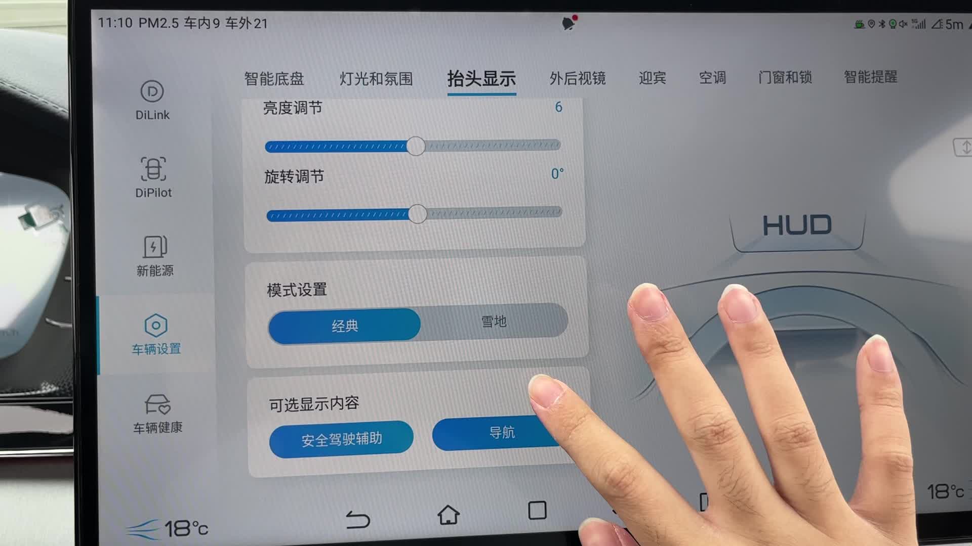 新款唐 EV 的 W-HUD 显示效果,人眼的效果相比相机拍出来的是要更大更清晰的。