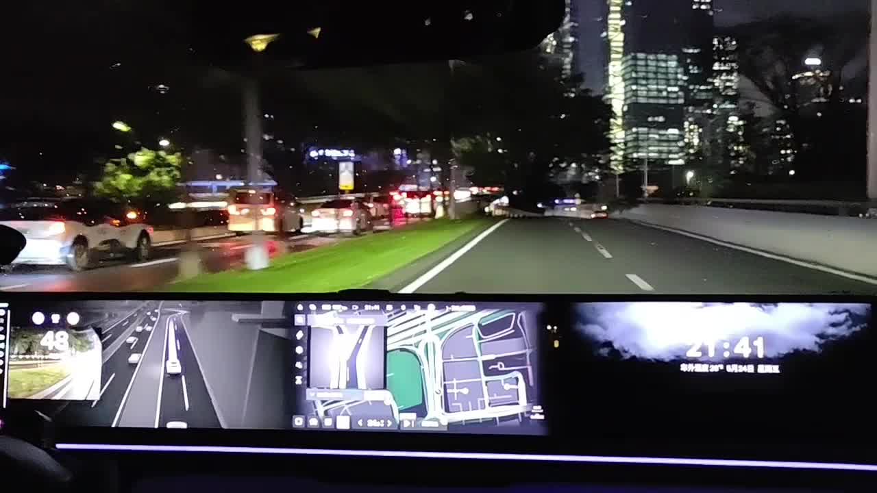 日常城市智能自动辅助驾驶_立交桥下U弯掉头_雨夜。