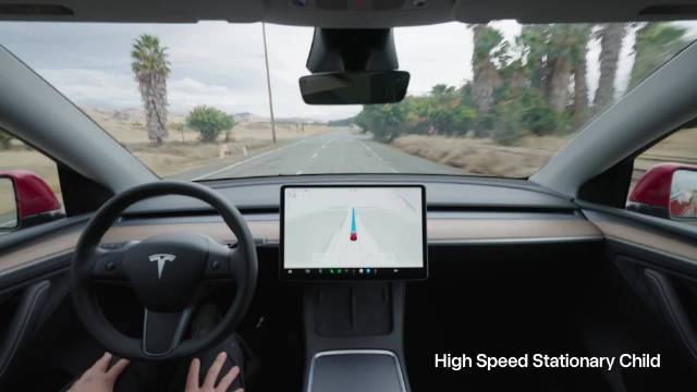特斯拉 AI 罕见地做了一轮主动安全的传播,分享了 16 个触发 AEB 自动紧急制动或 AES 自动紧急转向的场景。 这里我只搬了一个,73 英里时速,差不多 120 km/h 的儿童横穿 AEB 刹停。纯视觉的 AEB 做成这样还是非常厉害的。 主动安全的要点是系统的低延迟和模型的高智能,特斯拉做得很强。按照特斯拉 AI 副总裁 Ashok 的说法,这类场景测试是 FSD 的十多种不同的验证方法之一。 对比国内的话,理想做的两段式 AES,不限速后向 AEB,华为的自适应 AEB、蔚来的端到端 AEB 等等,很多品牌都在主动安全上做了很多工作。虽然不好直接对比,但主动安全这块可以说是中美两开花。