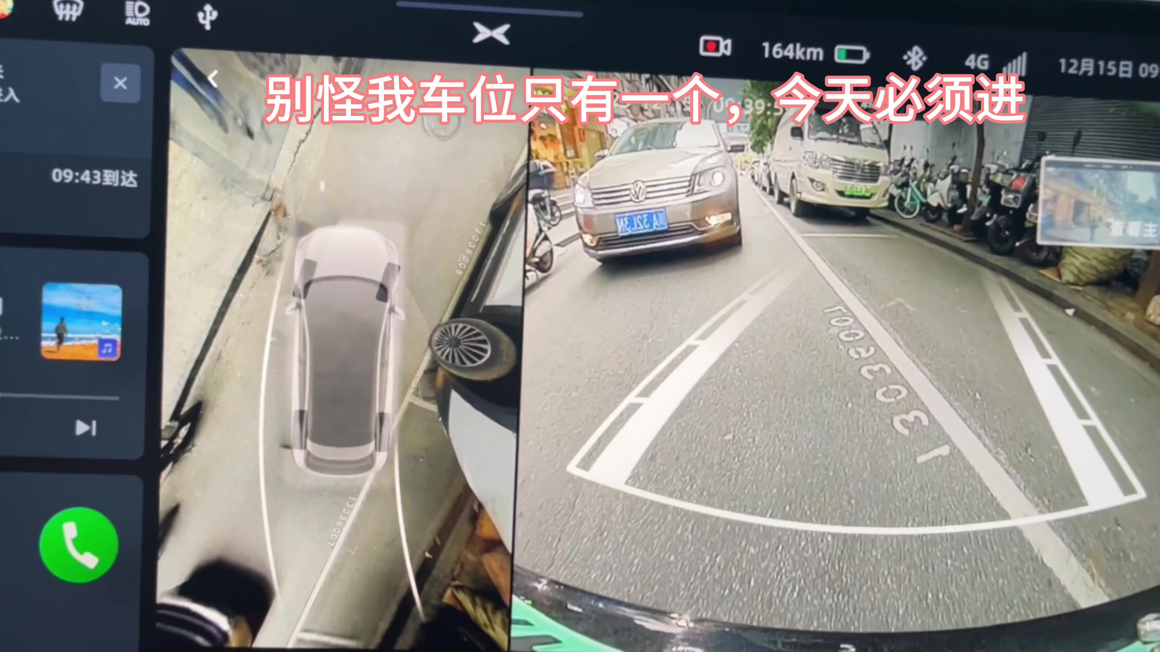 小鹏智能泊车真的救新手🐶命!! 事情是这样的,公司楼下停车位真的巨少,能找到一个实属不易😂 今天好不容易在楼下单行道上有一个停车位,估计后车也想停吧,一直跟着我,侧方位停车后放距离不够,还是打开了自动泊车试试,小P一点一点往后倒,试探后车距离,车机上可以直接显示具体距离,很贴心喔,以为关键时候小P会罢工,没想到新版本升级后这么强,硬是把后车逼到不得不后退😂,最后完美入库嘿嘿~