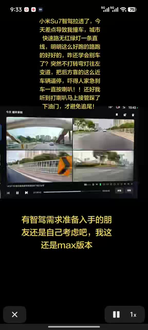 早就说了小米智驾拉胯,还敢放心这么用,后面网约车不撞上来都是人次了,而且SU7的表现比YU7差不是一个档次的{:无语02:}