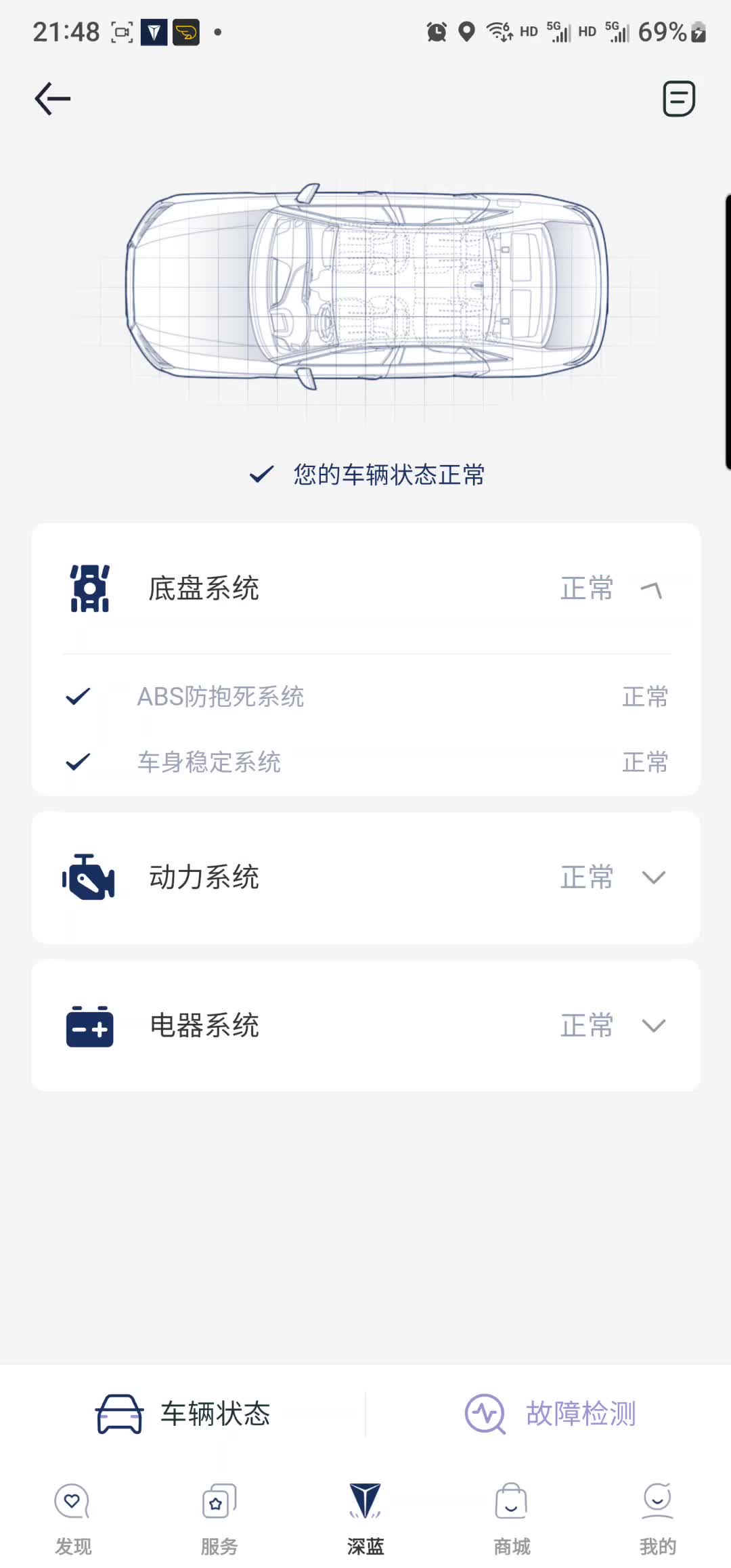 感觉长安深蓝这APP好简单,操控功能在这里只能说够用,车状态这类分量感觉不怎么明显,车也可以改进你买了什么颜色App就什么颜色