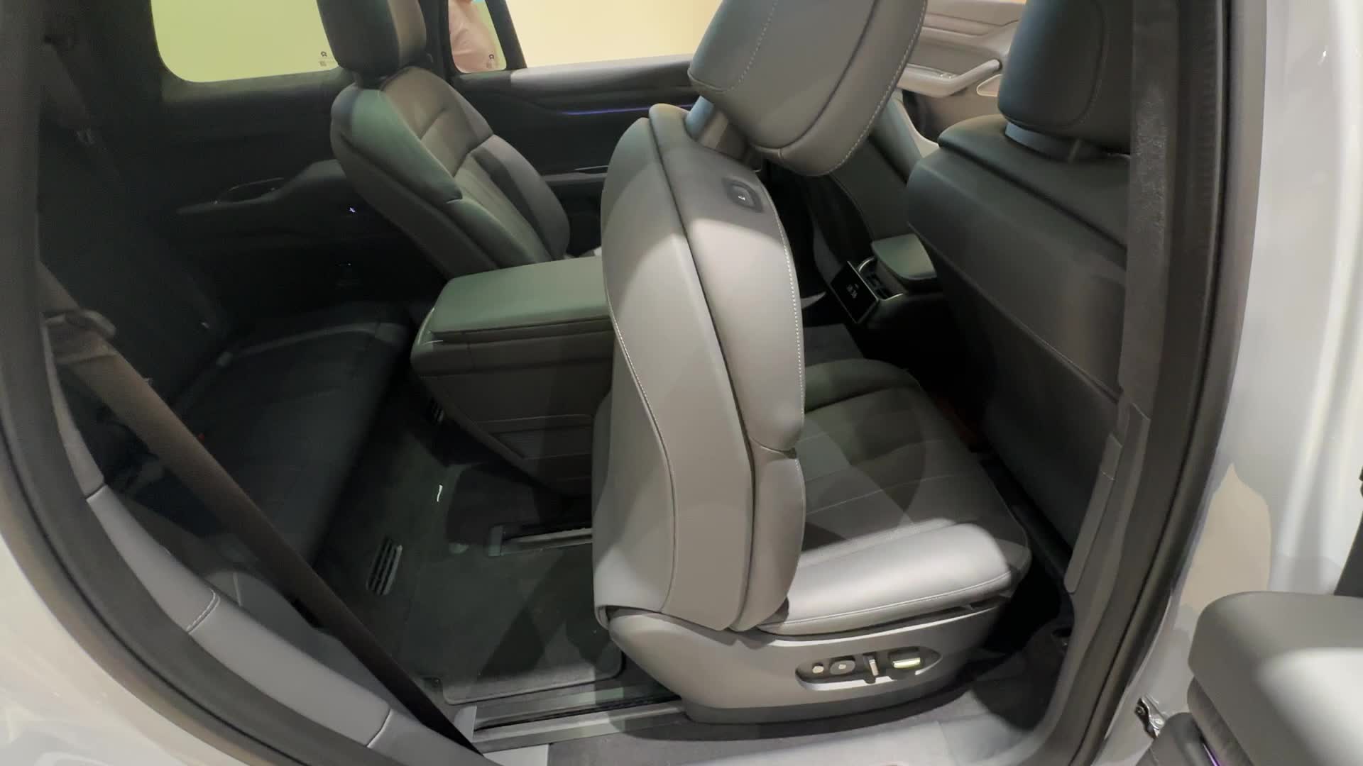 蔚来新ES8第二排座椅电动前移,真痛快~ 我第一次见到这么快的速度,比X7、GLS那些同样电动调节的SUV让人着急的速度可快太多。 不过回位的速度却有些让人着急了(因为即使有防夹也要考虑第三排乘员心理的安全感),但两个速度设定相差有些大,加深了第二排乘员这种“等待”的不太好的心理体验。 另外特别值得说的是,二排座椅的滑轨,可是和MPV一样的长滑轨,而不是SUV上那种蜗轮蜗杆的(我之前微博说过一个观点,ES8就是目前蔚来的MPV)