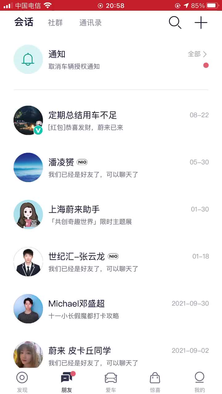 前天说我一个号无故有车主标识,积分无故加入群,连发4个2000分红包,投诉蔚来400后,内部也备案查证,后来回复,车主标识是系统出错,积分红包也是系统出错,一切都是出错,虽然无语,但也不想给蔚来带来负面消息,就当我白说一场。公平原则,因为蔚来不愿意提供群中收红包是谁,我要求退还积分,蔚来也退回了,算了,我确认我说的是真的,谁看谁明白吧。@贺磊
