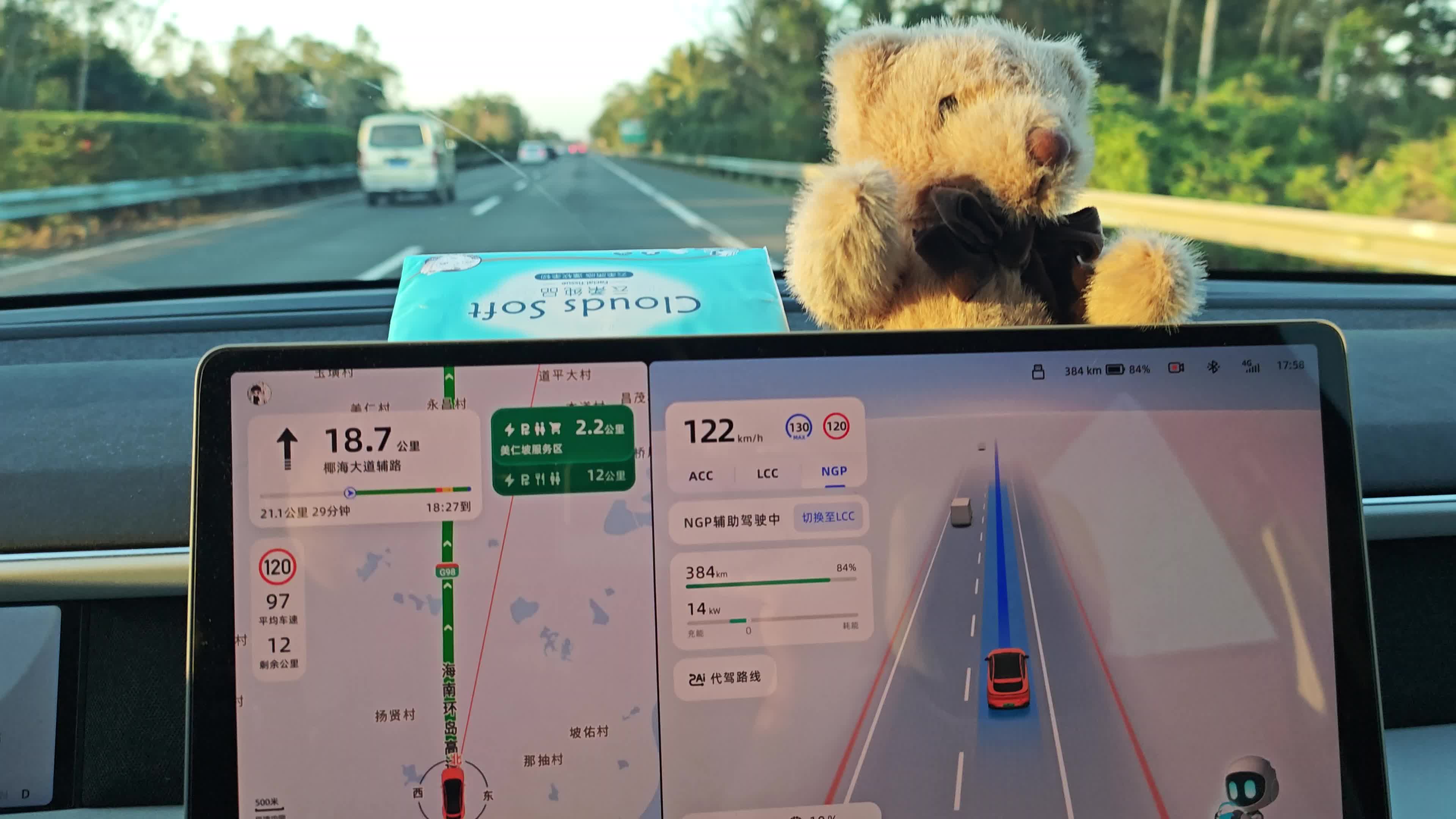 去年7月小鹏g6刚上市之后,我就约了销售到店里试驾,记得那会儿试驾车的版本还是4.3,高速ngp体验也没有太完善,但那是我第一次真正体验到支架的好处,也是因为考虑到我通勤需要走高速,所以毫不犹豫的就下定了。 优点:4.3的版本其实就已经可以感觉到XNGP在选择道路和决策方面的优秀,走线很稳,选择道路很清晰。 缺点:跟其他车道行驶车辆的博弈能力稍弱。 现在半年过去了,海口也开通城区XNGP了,希望5.0.1先锋5版本尽快推,让我们这种18线小城市也能体验一下城区XNGP的震撼。